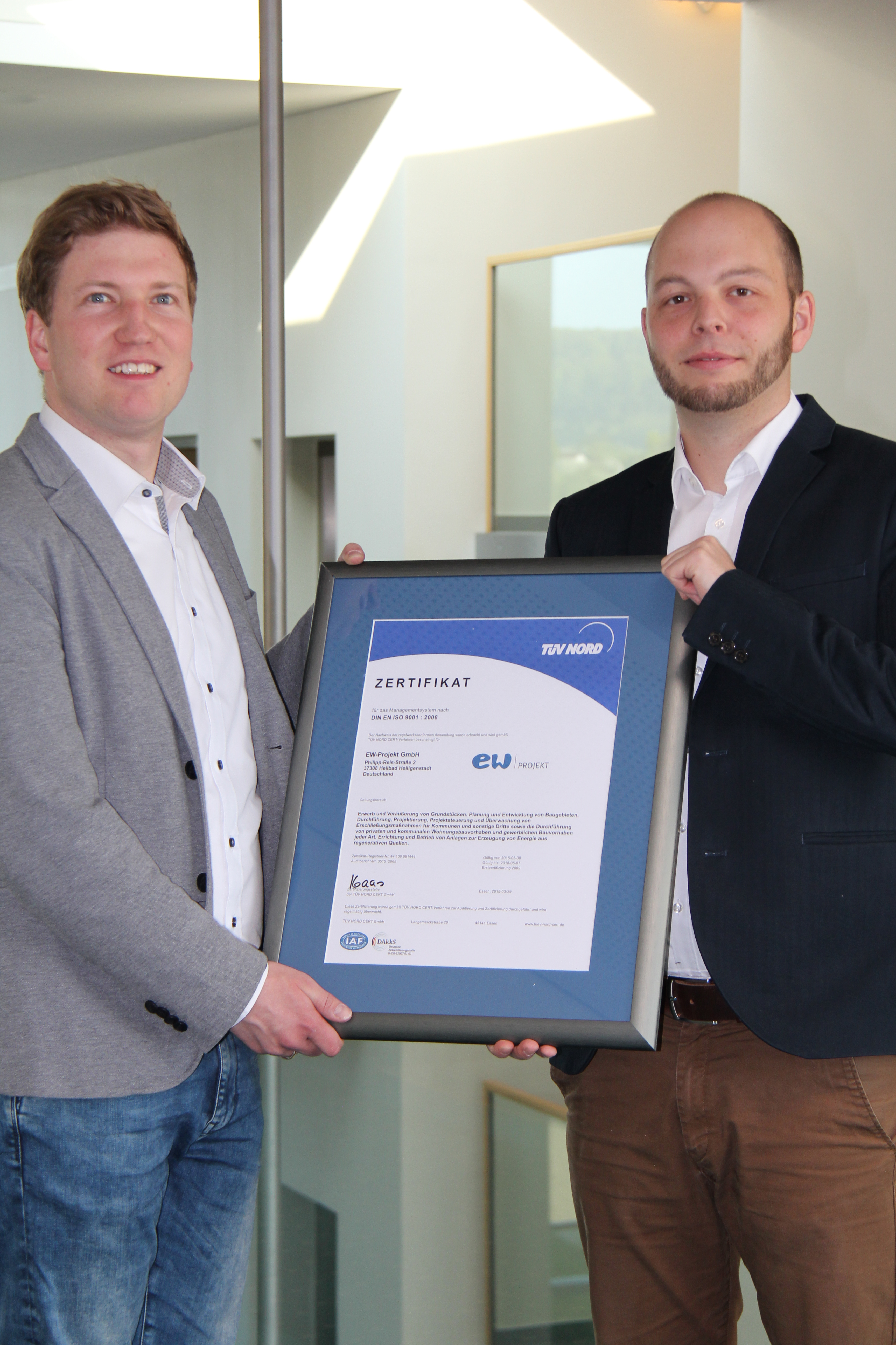EW Bus GmbH, EW Wasser GmbH, EW Projekt GmbH und EW Wärme GmbH konsequent die definierten Vorgaben der europäischen Norm DIN EN ISO 9001. Geprüft und bestätigt haben dies externe Gutachter vom TÜV NORD CERT GmbH bzw. der DEKRA Certification GmbH. Fortlaufende Optimierungen zum Beispiel in den Arbeitsabläufen und dem Kundenservice sind damit fest verankert.